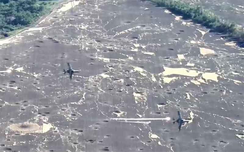 Атаку пары Су-25 ВКС России сверху снял российский дрон