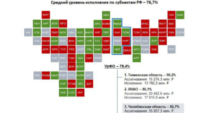 Уровень исполнения расходов на реализацию нацпроектов в Челябинской области выше среднероссийского (76,7%) и составляет 82,7%, а также выше среднего показателя в УрФО (78,4%).