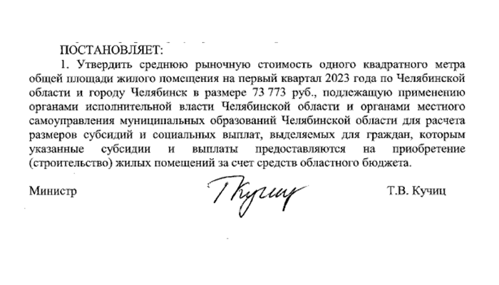 Министерство тарифного регулирования и энергетики Челябинской области утвердило среднюю рыночную цену квадратного метра жилья на первый квартал 2023 года, передает корреспондент Агентства новостей «Доступ».