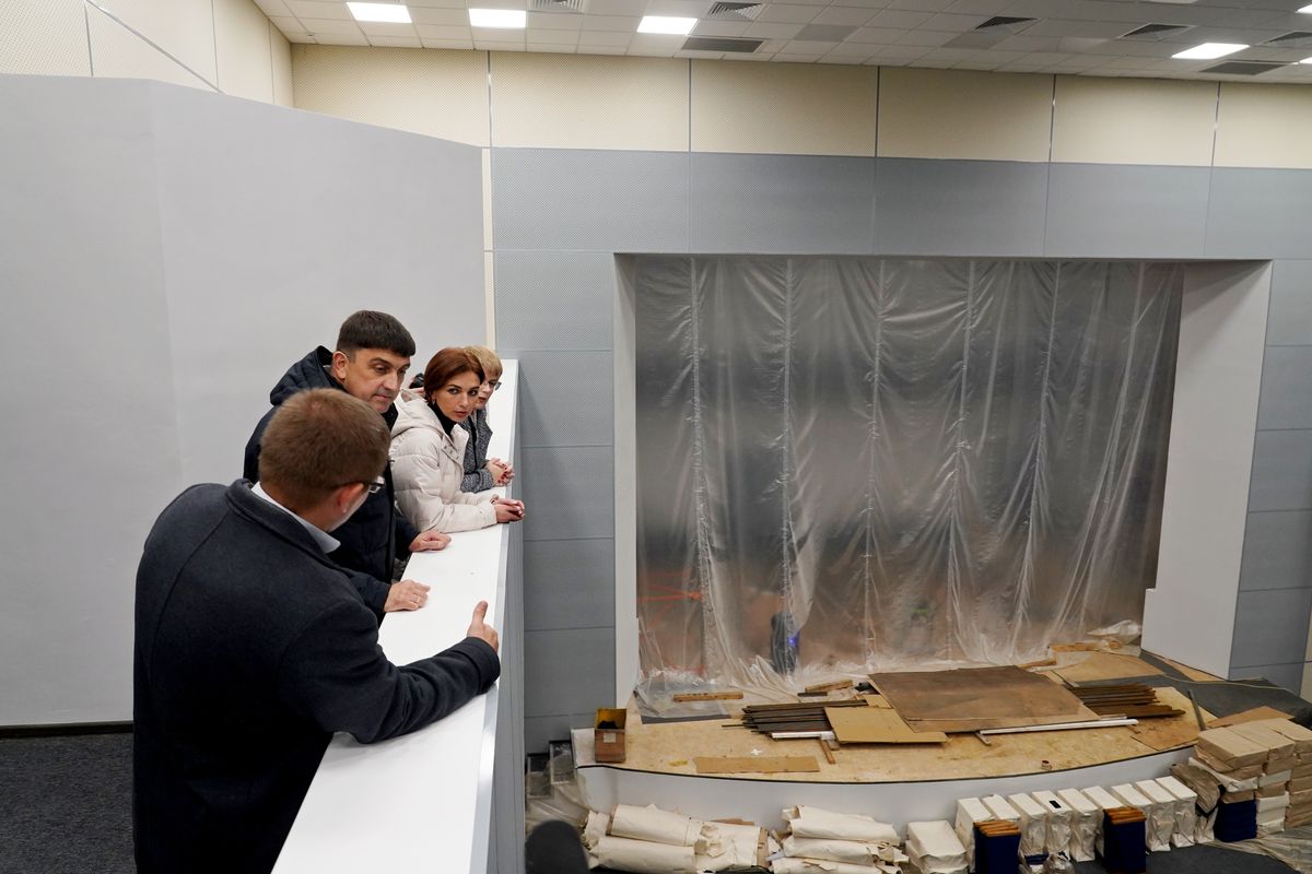 Ещё вчера входящих в помещения дворца встречали кирпичные стены и горы строительной пыли, сегодня — лоск свежевыкрашенных помещений и струящиеся в пол портьеры. Зрительный зал пополнился мягкими креслами. Сейчас ведётся их монтаж. Стены обшиты современными материалами в серо-бежевых тонах, на полу — ковровое покрытие. Сцене занавесом пока служит строительная плёнка, но уже скоро кулисы распахнутся перед посетителями. Всё это — лишь внешняя оболочка проведённых здесь масштабных работ.