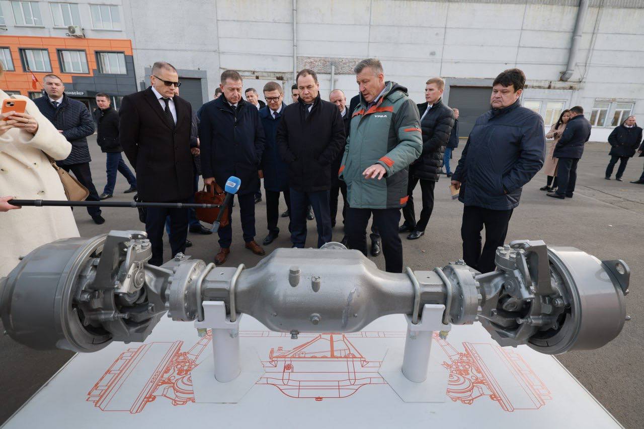 Премьер-министр Республики Беларусь Роман Головченко и губернатор Челябинской области Алексей Текслер посетили автомобильный завод «УРАЛ». В рамках рабочей поездки на Южный Урал белорусская делегация во главе с премьер-министром Романом Головченко ознакомилась с производством автомобилей. Гости Челябинской области и глава региона Алексей Текслер посетили главный конвейер завода, осмотрели компоненты белорусского производства и модельный ряд автомобилей. Отметим, за 2023 год автозавод «УРАЛ» закупил у белорусских производителей карданные валы, шины, рулевые механизмы, гидроцилиндры и многое другое.