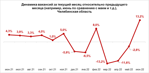 В челябинской области в июне 2022 года работодатели резко увеличили свои потребности в наемных сотрудниках.