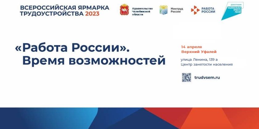 Центр занятости населения Верхнего Уфалея в рамках первого этапа Всероссийской ярмарки трудоустройства «Работа России. Время возможностей» проведёт ярмарку трудоустройства. В ней примут участие АО «Завод Дормаш», вагонное депо Верхний Уфалей — филиал ЗАО «УГШК», ООО «Литейный центр», ООО «АртМеталл», ООО «Сервисный центр», войсковая часть №3468 г. Снежинска, пограничное управление ФСБ России по Челябинской области (г. Челябинск).