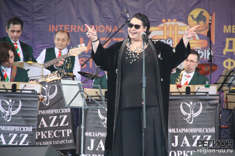В нашем городе фестивальной площадкой стала сцена у Торговых рядов. Троичане громкими аплодисментами встречали джазменов - филармонический джаз-оркестр Республики Татарстан под управлением Сергея Васильева из Казани и эстрадно-джазовую певицу, автора песен, композитора Мариам Мерабову из Москвы.