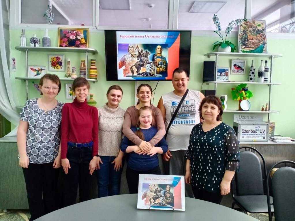 31 марта в Отделении дневного пребывания для молодых людей с ограниченными возможностями здоровья прошёл патриотический час "ГЕРОЯМИ НАША ОТЧИЗНА СИЛЬНА", подготовленный библиотекарем Центральной районной библиотеки.