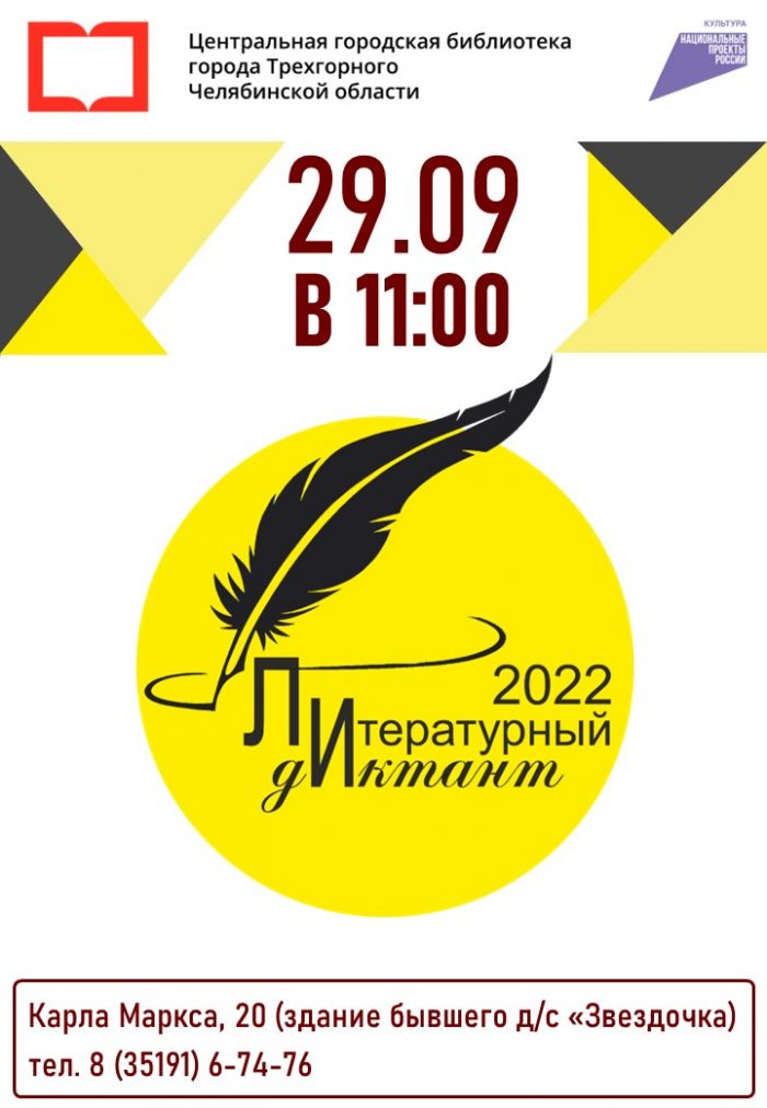 Впервые в Трехгорном состоится Международная просветительская акция «Литературный диктант».
