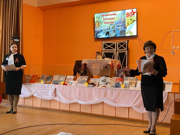Ярким дополнением к мероприятию стала книжная выставка-память «Место подвига — Ленинград». На выставке представлены книги, повествующие о событиях тех лет, о защитниках города, о «дороге жизни», о стойкости жителей Ленинграда, а также воспоминания очевидцев, переживших тяжёлые блокадные времена.