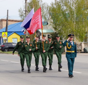 Парадным строем прошла по центральной площади колонна автомобильной техники предприятий и организаций Еткульского района. Парадным строем по площади прошел кадетский класс Еткульской средней школы.