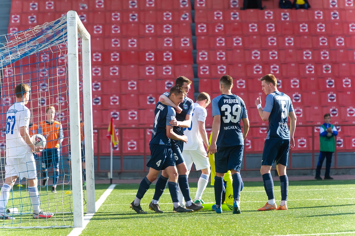И когда уже казалось, что первый тайм будет безголевым, "Челябинск" забил. После передачи с левого фланга мяч оказался в штрафной хозяев. Рикошет от защитника дезориентировал вратаря и оказавшийся перед воротами Максим Руднев практически в упор вколотил снаряд в сетку - гол в раздевалку!