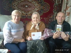 Слова поздравлений и добрых пожеланий, памятные подаркии приветственный адрес от Президента Российской Федерации В.В. Путина именинница приняла от сотрудников Управления социальной защиты населения администрации Усть-Катавского городского округа и Совета ветеранов г. Усть-Катава.