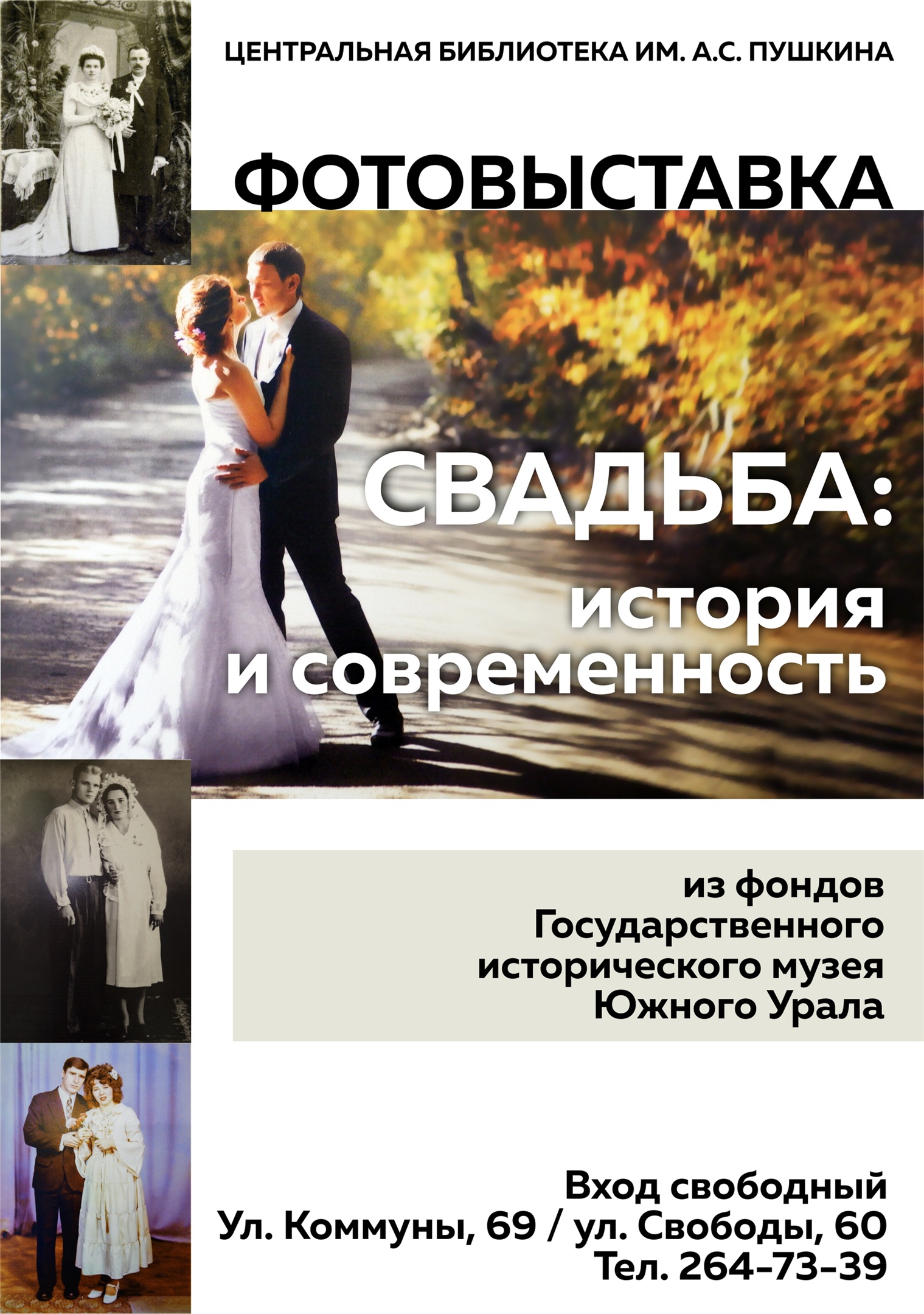 Приглашаем челябинцев в Центральную библиотеку им. А.С. Пушкина на фотовыставку «Свадьба: история и современность», которая продолжится до конца июля. Приходите, читайте, смотрите и, возможно, вы увидите на фотографиях знакомые лица.