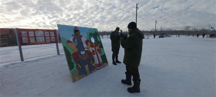 Также для солдат были организованы весёлые и подвижные конкурсы - поднятие гири, перетягивание каната, бой "дубинами", в которых активно принимали участие все присутствующие. За участие в конкурсах вручались "продовольственные" призы. Все желающие могли сделать памятное фото в фотозоне на тему русских былинных героев и на фоне ростовых кукол.