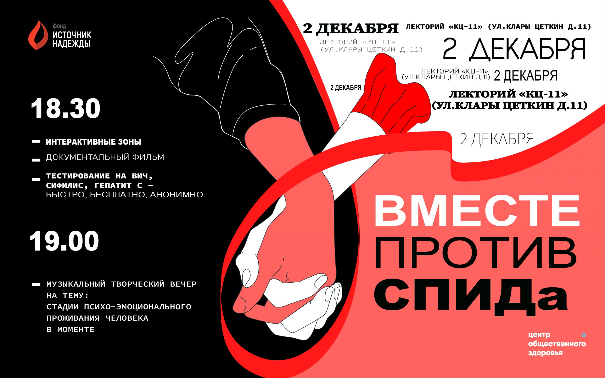 2 декабря в 18:30 в лектории “КЦ-11” по адресу ул. Клары Цеткин, 11 пройдет музыкальный творческий вечер, призванный обратить внимание на существующую проблему дискриминации ВИЧ-положительных людей.