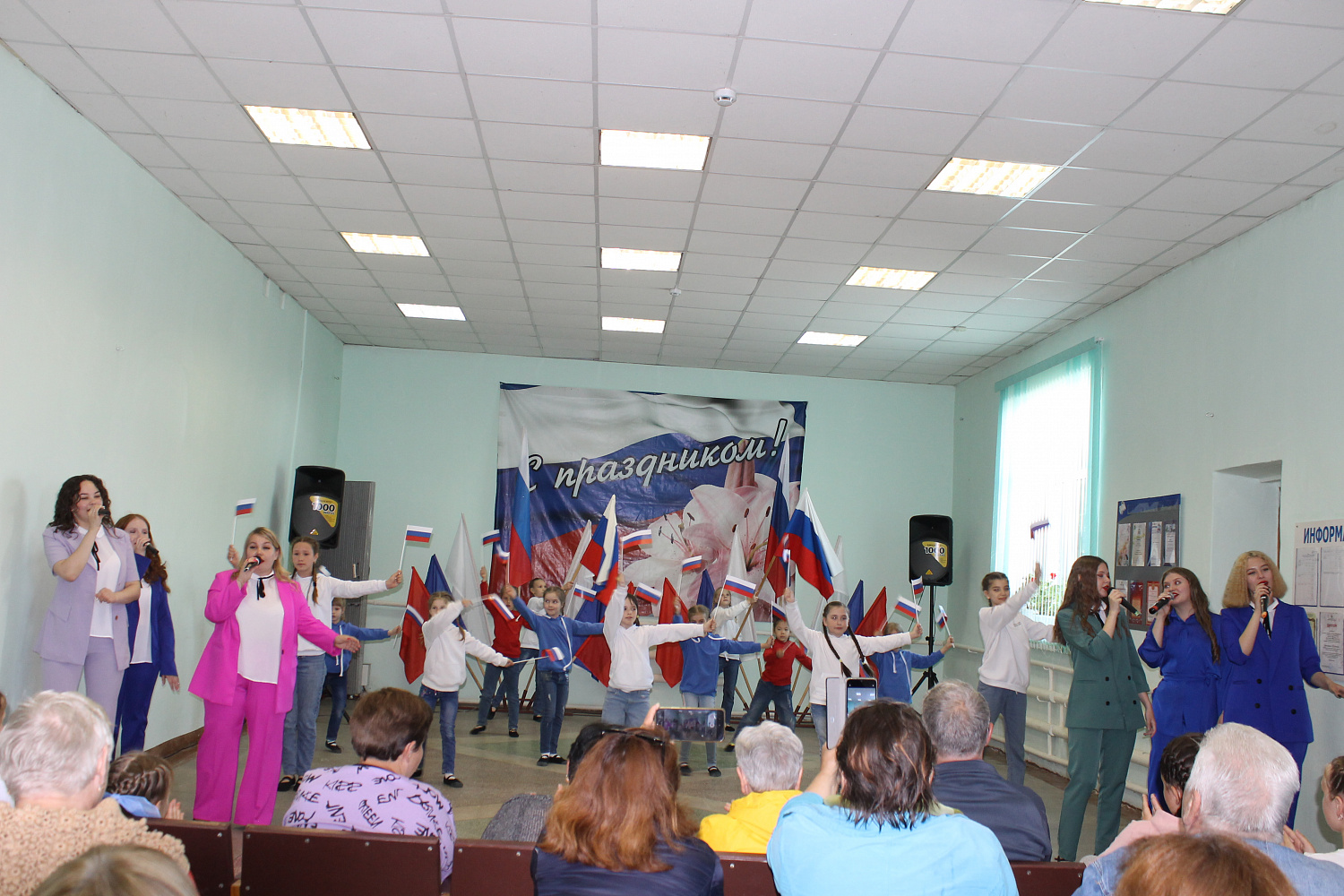 Концерт открыла вокальная студия «Вдохновение» песней «Веселись народ». В исполнении Вокальной студии Мелодия прозвучали песни «Росиночка Россия», «Радуга», «Дорога добра». В исполнении ансамбля «Русская песня» прозвучала композиция «Кто вырос в России». Украшением концерта было выступление приглашенных гостей Кошкиной Елены солистки Хора народной музыки «Песни Урала» (ЧГИК) и солистки вокальной группы «Солнышко» Таисии Блиновской (Детский сад № 51 п. Западный). Для всех пришедших в этот день на праздничный концерт, звучали песни о любви, о Родине и о дружбе, а танцы были настолько веселые и зажигательные, что создало для присутствующих поистине теплую и дружескую атмосферу. Каждое выступление благодарно отзывалось в сердцах зрителей. Патриотические номера дарили радость, добрые воспоминания, вызывали любовь к своей малой и большой Родине. Концерт прошел на одном дыхании, зрители не скупились на бурные аплодисменты, благодарили артистов за их творчество.