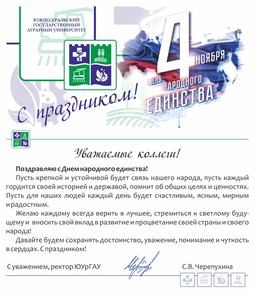 С уважением, ректор ЮУрГАУ С.В. Черепухина