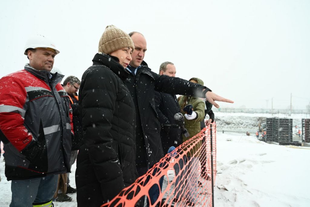 Наталья Котова контролирует ход работ по возведению очистных сооружений. Фото Олега Каргаполова (Вечерний Челябинск)