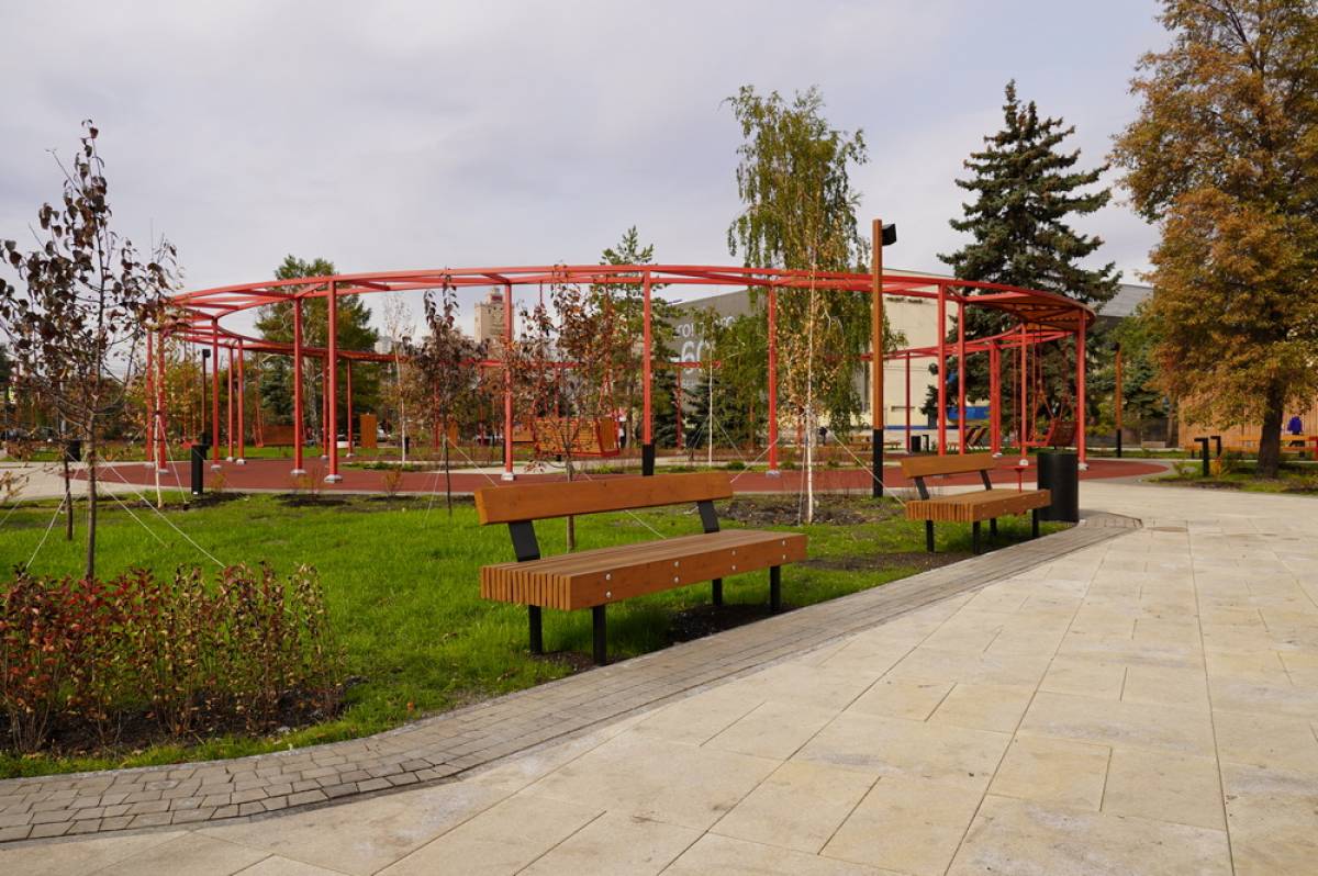 «Здесь было принято решение сделать полностью пешеходную зону. Общая площадь территории – 14 тысяч квадратных метров. Сейчас мы видим, как эта территория преобразилась – появились 150 малых архитектурных форм, высажены деревья и кустарники. Здесь появился масштабный памп-трек, он уже пользуется спросом как у любителей экстремальных видов спорта, так и у неподготовленных ребятишек. Стоит отметить, что здесь установлен первый в городе антивандальный теннисный стол, который также пользуется большим спросом у людей, так что будем ставить второй стол. Также здесь появилась спортивная площадка с уличными тренажерами. Акцент мы сделали на активности с уклоном на спорт, учитывая близость Дворца спорта.
