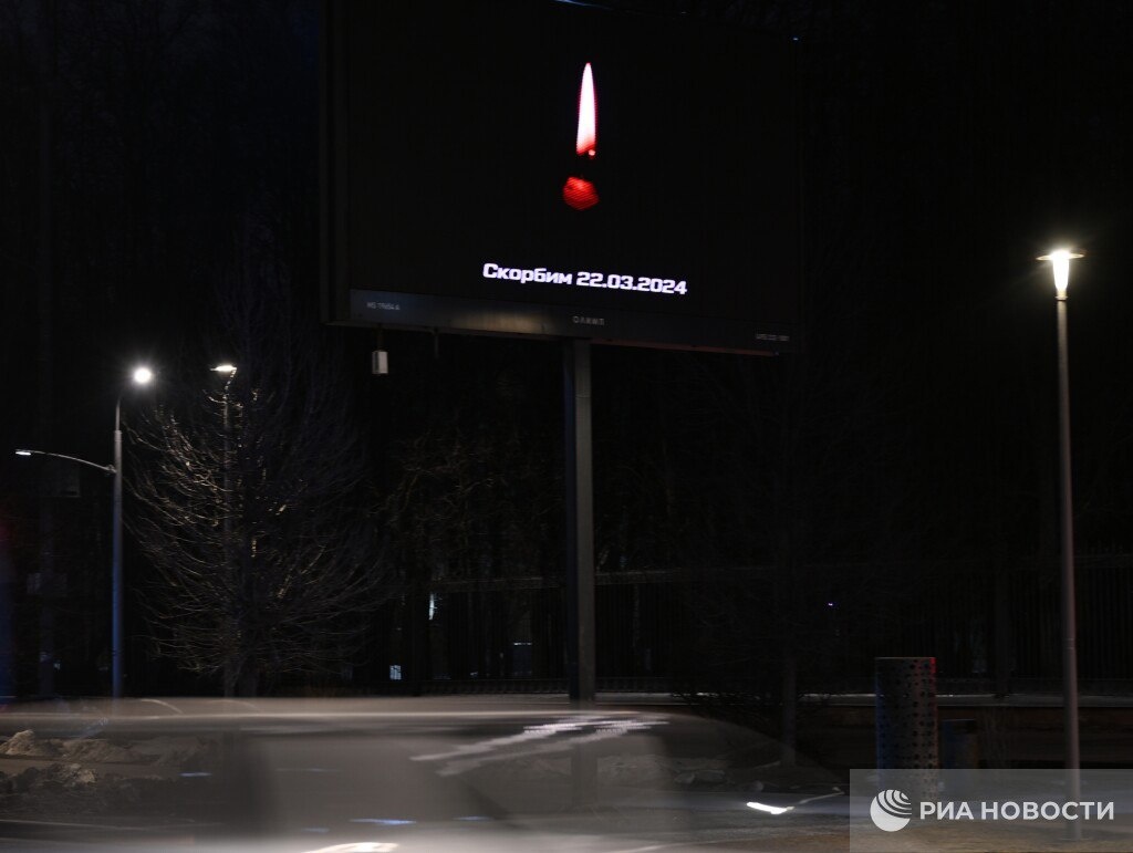 Сегодня в память погибших в теракте в «Крокус Сити Холле» на медиа-экранах города запустили изображение горящей свечи.
