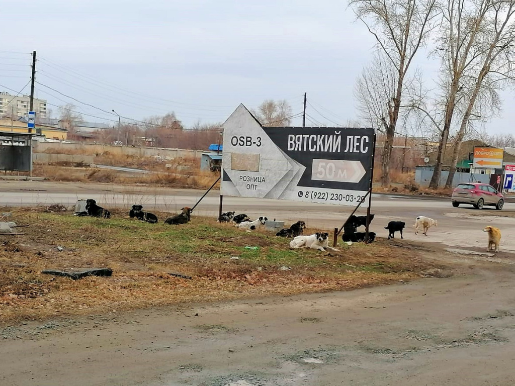 Стая бездомных собак через дорогу от "Камелота". Супруга вынуждена ходить мимо на работу, с работы и на обед.