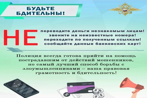 Полицейские напоминают, что не следует сообщать пароли от банковских карт, коды из сообщений и выполнять какие-либо банковские операции со своими счетами под диктовку неизвестных. Помните, сохранность ваших сбережений зависит, в том числе от принятых вами решений.
