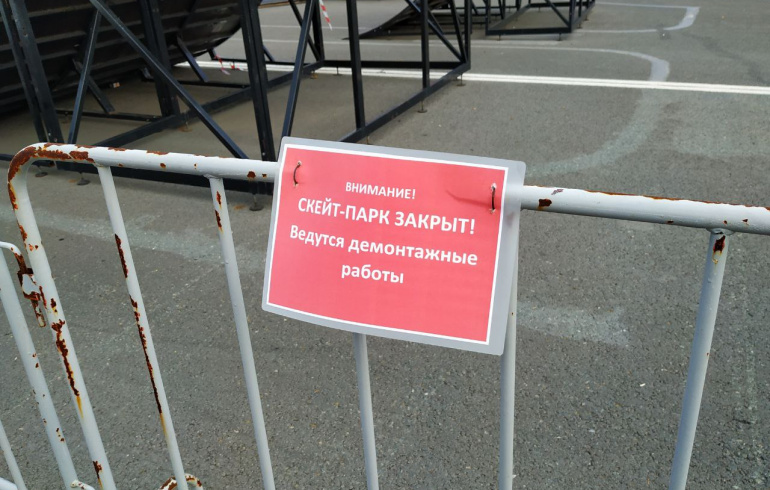 В ближайшее время рабочие разберут рампы для катания, трамплины, также беседки и скамейки.