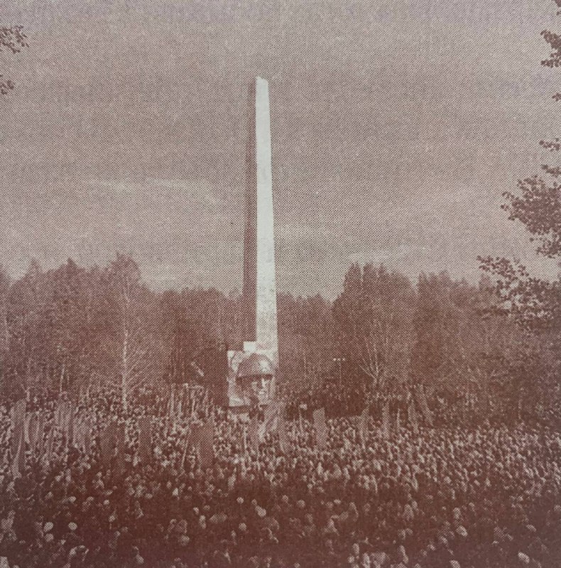 На первом фото изображено открытие памятника-мемориала тракторозаводцам, не вернувшимся с фронтов Великой Отечественной войны. Стела была установлена 8 мая 1975 года.