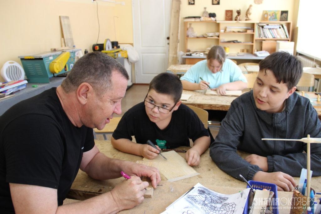 – В объединение детей принимаю с пятого класса, чтобы ручки уже могли держать инструмент, чтобы более-менее была развита моторика, внимательность – у нас острые инструменты. Обучение, как всегда и везде, – от простого к сложному. Сначала изучаем контурную резьбу, потом геометрическую, следующий вид – рель-ефная резьба.