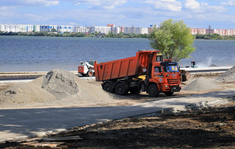 — Здесь убрали поросль и мусор, сейчас рабочие укладывают бетонную брусчатку, — написала мэр. — Береговую зону засыпали песком. Ведутся работы по расчистке дна озера, уже вывезено более 50 тонн ила.