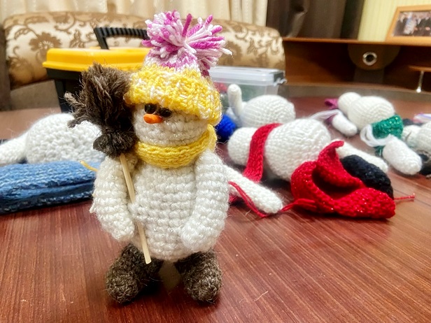 А затем уже по традиции председатель Общественного совета Анна Романова провела новогодний мастер-класс, во время которого каждый из присутствующих смог сделать снеговика.