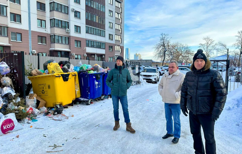 Состояние контейнерных площадок проверили вице-мэр Александр Астахов, глава администрации Советского района Владислав Макаров и представитель регоператора «Центр коммунального сервиса».