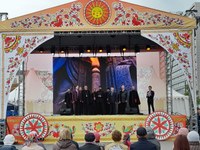 А на сцене в это время проходил концерт участников народных коллективов, артистов, перед публикой выступали кадеты школ и церковный хор.