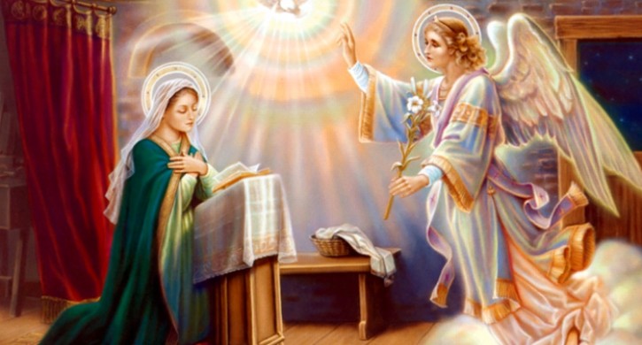 Согласно библейскому преданию, в шестой месяц после зачатия Елизаветой Иоанна Крестителя небесный посланник был послан Богом в Назарет к Деве Марии, обрученной мужу по имени Иосиф, со словами: «Радуйся, Благодатная, Господь с Тобою!». Он предсказал Марии рождение у нее сына, который будет велик и назовется Сыном Всевышнего.