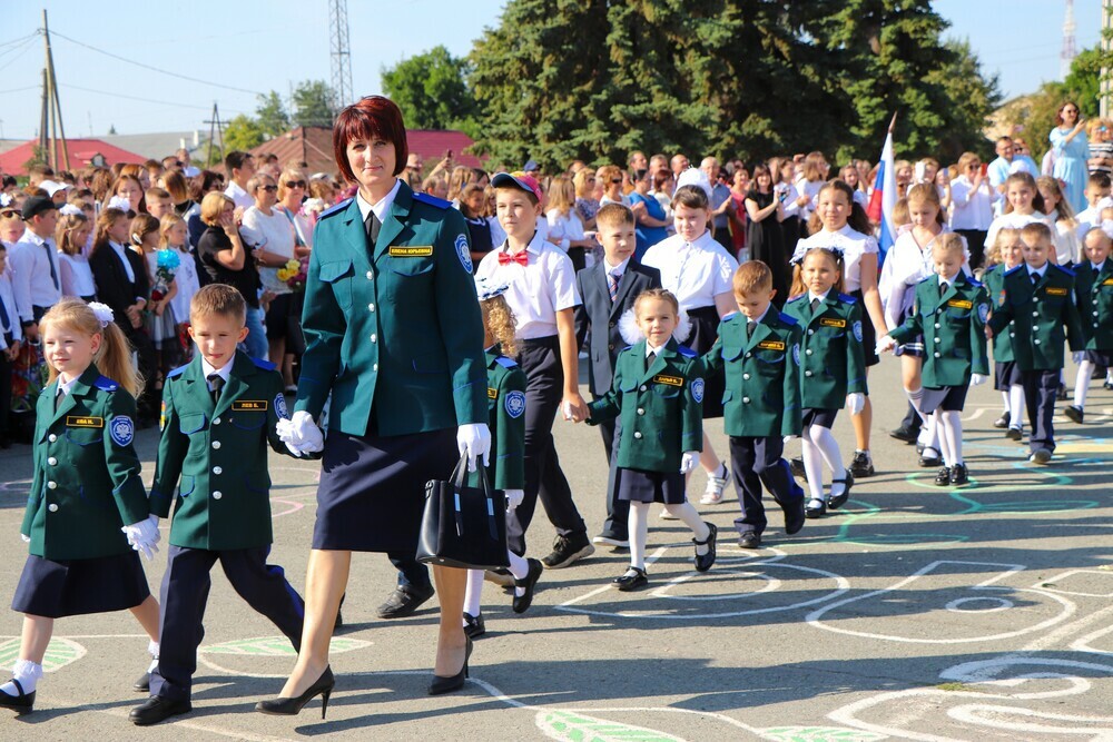 Дружным строем прошли ребята 5 «А» класса с классным руководителем Алёной Бальцер. В 5 класс в этом году поступили 22 ребёнка. Не отставали и держали строй 25 первоклассников под руководством классного руководителя Елены Репп.