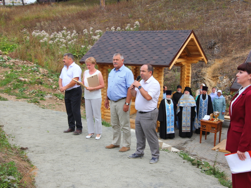 Председатель Совета депутатов Кусинского городского поселения О. С, Чарина вручила благодарственные письма подрядчику Г. А. Двинину и субподрядчику –генеральному директору ООО «Ураллесторг» Д. В. Гриценко, который вместе со своими сотрудниками построил часовню и навес над ключиком.