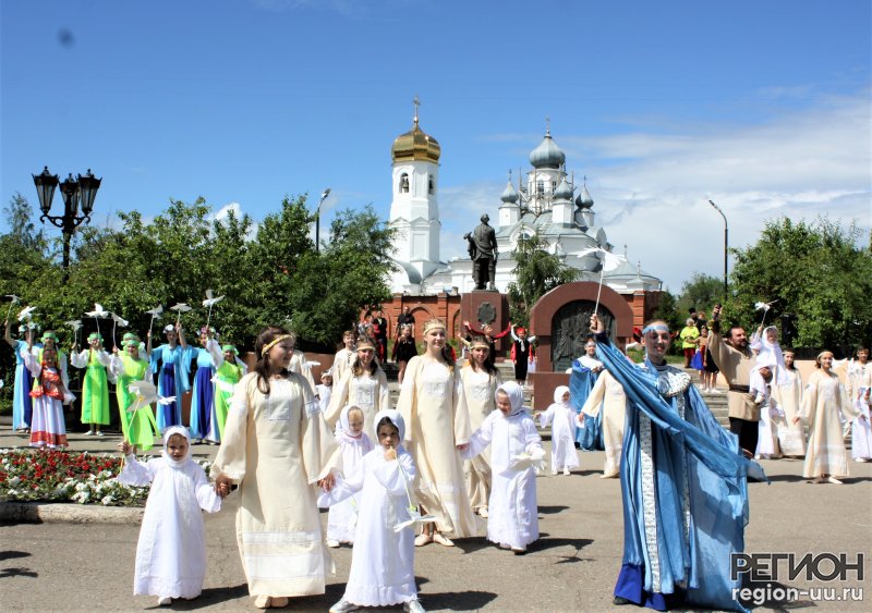 В сквере носящего имя основателя города генерал-губернатора Ивана Неплюева состоялся молебен и красочный праздничный концерт. К памятному постаменту с изображением Святой Троицы возложили цветы, рядом чаща со святой водой, лучи солнца играют на церковной лампаде.