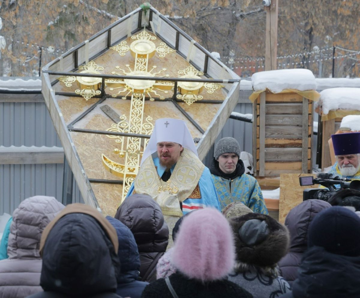 В Челябинске освятили центральный крест и купол храма Александра Невского