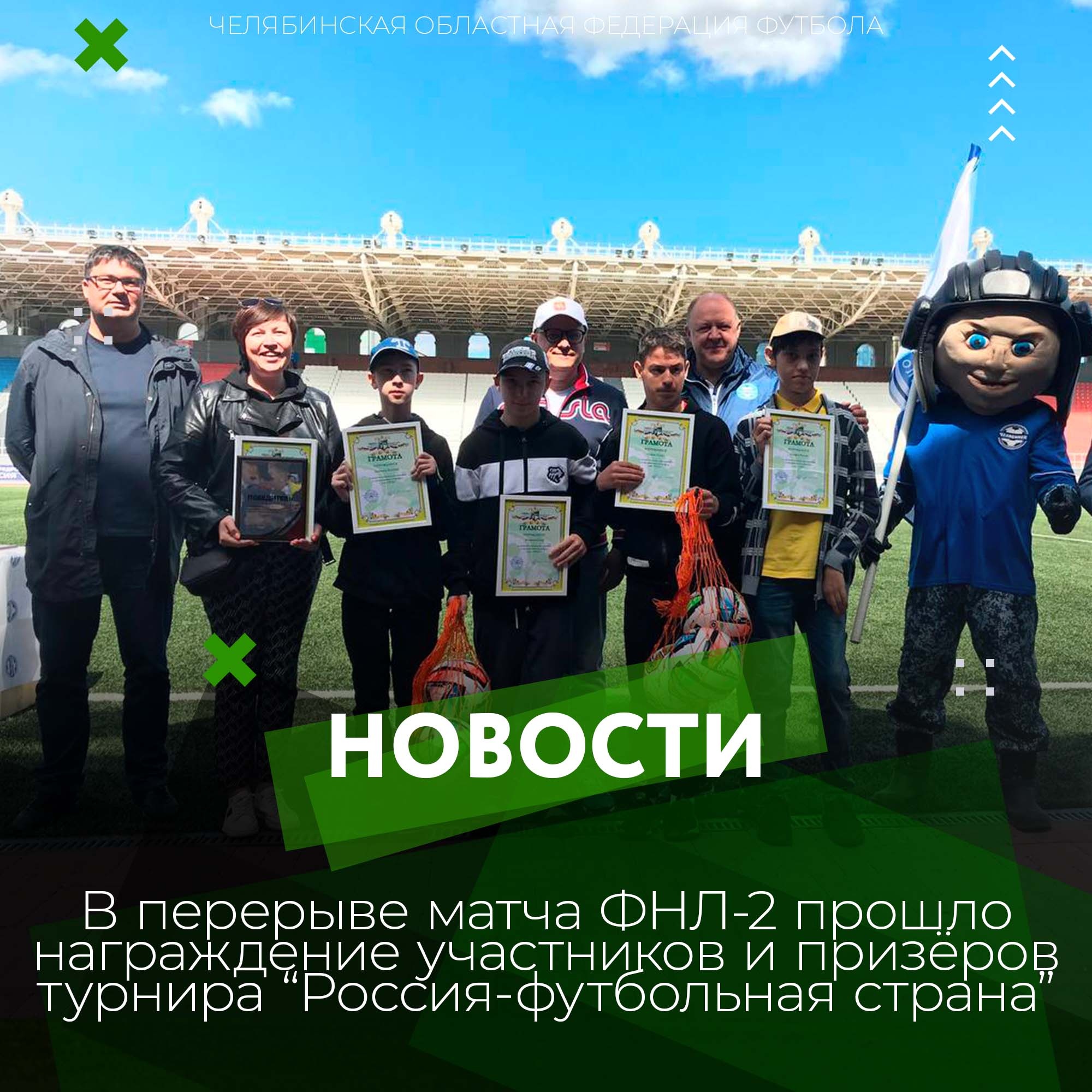 4 июня на стадионе "Центральный" в перерыве матча ФНЛ-2 между ФК "Челябинск" и ФК "Лада" г. Тольятти прошло награждение победителей и призёров РЕГИОНАЛЬНОГО ЭТАПА ВСЕРОССИЙСКОГО СМОТРА-КОНКУРСА "РОССИЯ-ФУТБОЛЬНАЯ СТРАНА".