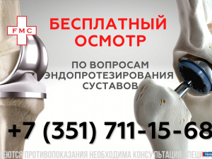 Показано эндопротезирование? Запишитесь на бесплатный осмотр в клинику "ЭФ ЭМ СИ" по телефону: 8 (351) 711-15-68 .