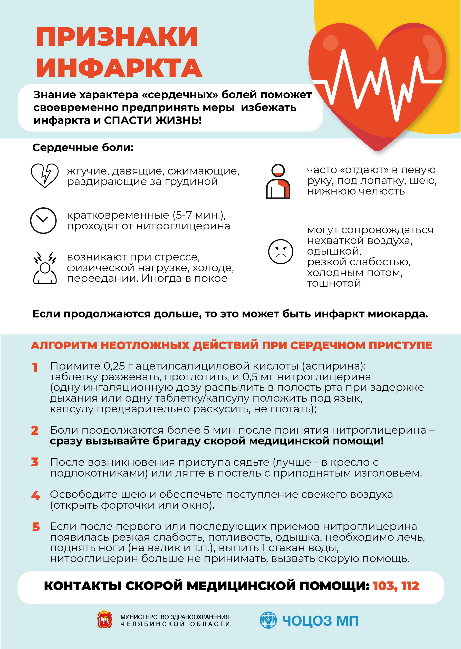 ❗ Если вы чувствуете боль в груди, и хотя бы один из пунктов относится к вам, звоните 112.