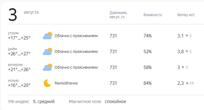 Днем все так же будет облачно с прояснениями, температура воздуха не поднимется выше +27 градусов. А ночью не опустится ниже +16 градусов.