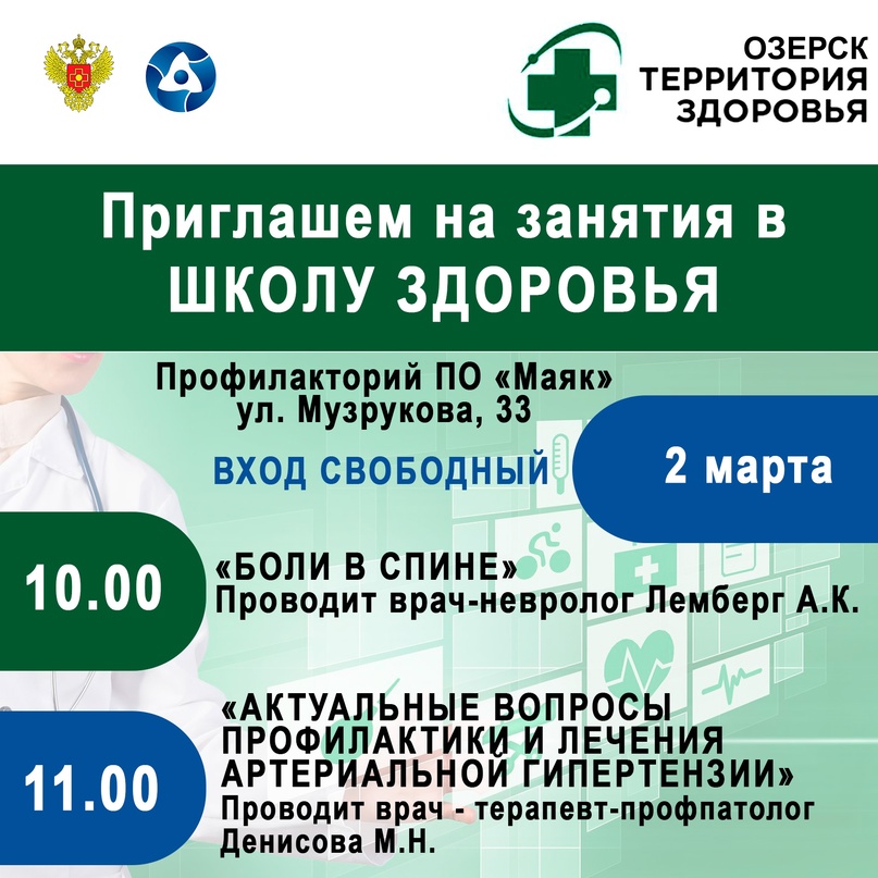Занятия пройдут в рамках городского фестиваля "Озерск - территория здоровья" 2 марта в актовом зале профилактория ПО "Маяк".