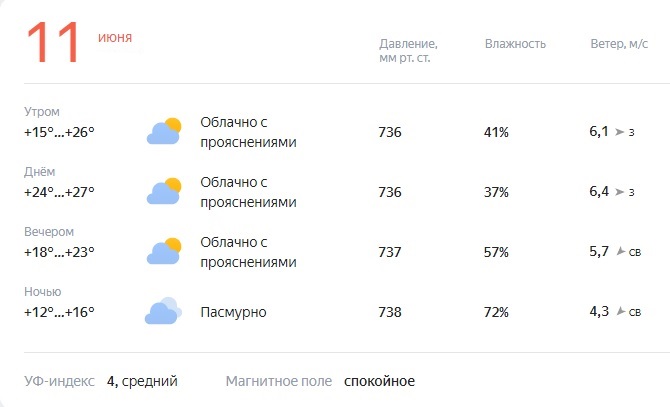 Солнце взошло в 4:32, а зайдет в 21:22. Световой день продлится 16 часов 50 минут.
