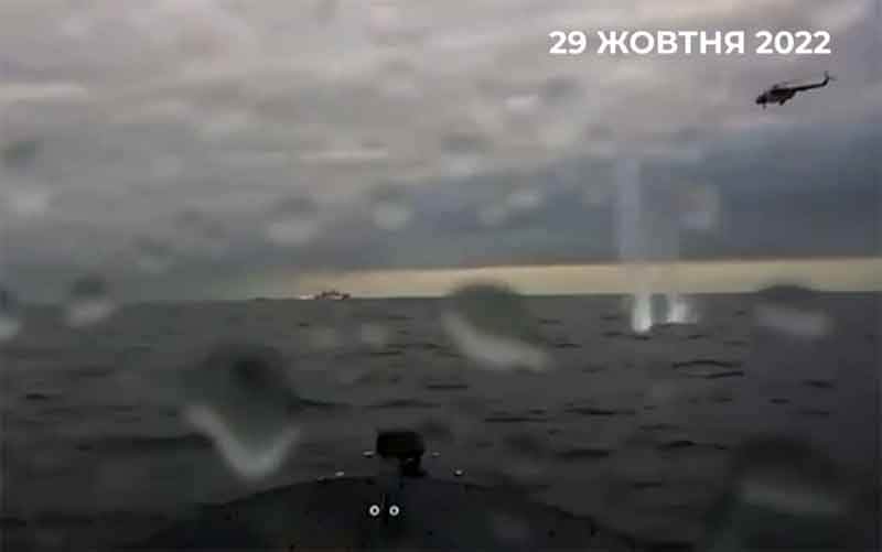 В сети появились видео ВС Украины о массовой атаке плавающих беспилотников-камикадзе на корабли в бухте Севастополя В атаке на корабли Черноморского флота были задействованы 9 БПЛА и 7 автономных морских беспилотных аппаратов Автор: Служба новостей Фото: Скрин видео Дата: 29.10.2022 (CHELINDUSTRY) В сети появились видео ВС Украины о массовой атаке плавающих беспилотников-камикадзе в бухте Севастополя.