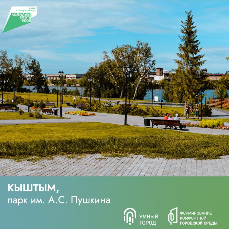 У жителей Кыштыма появилось ещё одно место для отдыха — парк им. Пушкина. Работы проводились в 4 этапа с 2019 по 2021 годы за счёт федерального и областного бюджетов. Площадь благоустройства составила 24 197 кв. м.