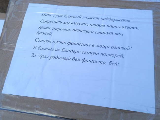 « Очень важны и обращения наших земляков, которые в стихах и прозе нацеливают воинов на Победу над новоявленными нацистами. Традиция поддержки уральцами нашей армии развивается! » — подчеркнул Игорь Михайлов .
