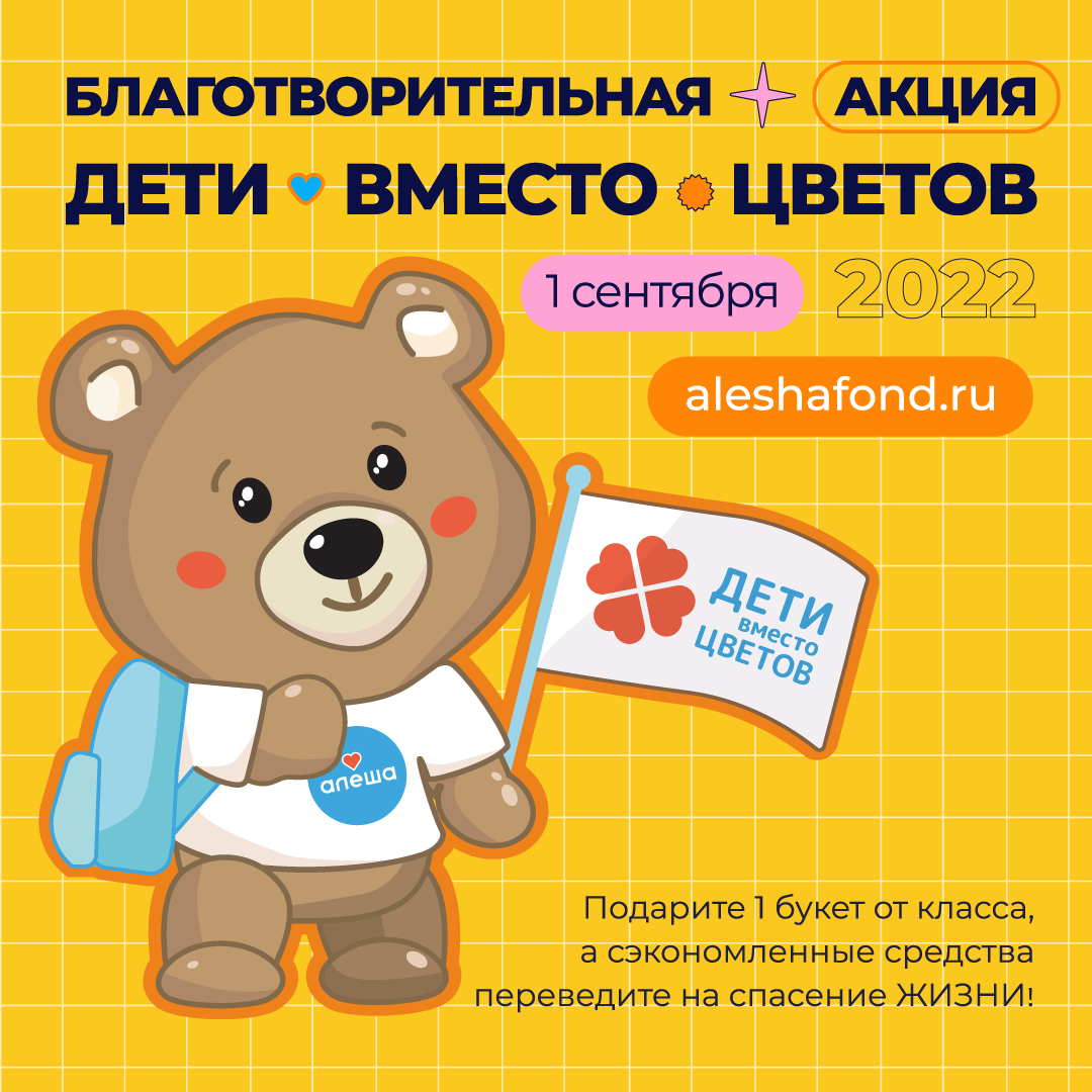 Это новая традиция российских школ. Масштабная акция, в которой участвуют учащиеся со всей страны. Ее суть в том, чтобы помочь ребенку с тяжелым заболеванием и устроить для школьников яркий праздник. В День знаний ученики дарят учителю один красивый букет от класса, а сэкономленные деньги переводят в благотворительный фонд «Алеша».