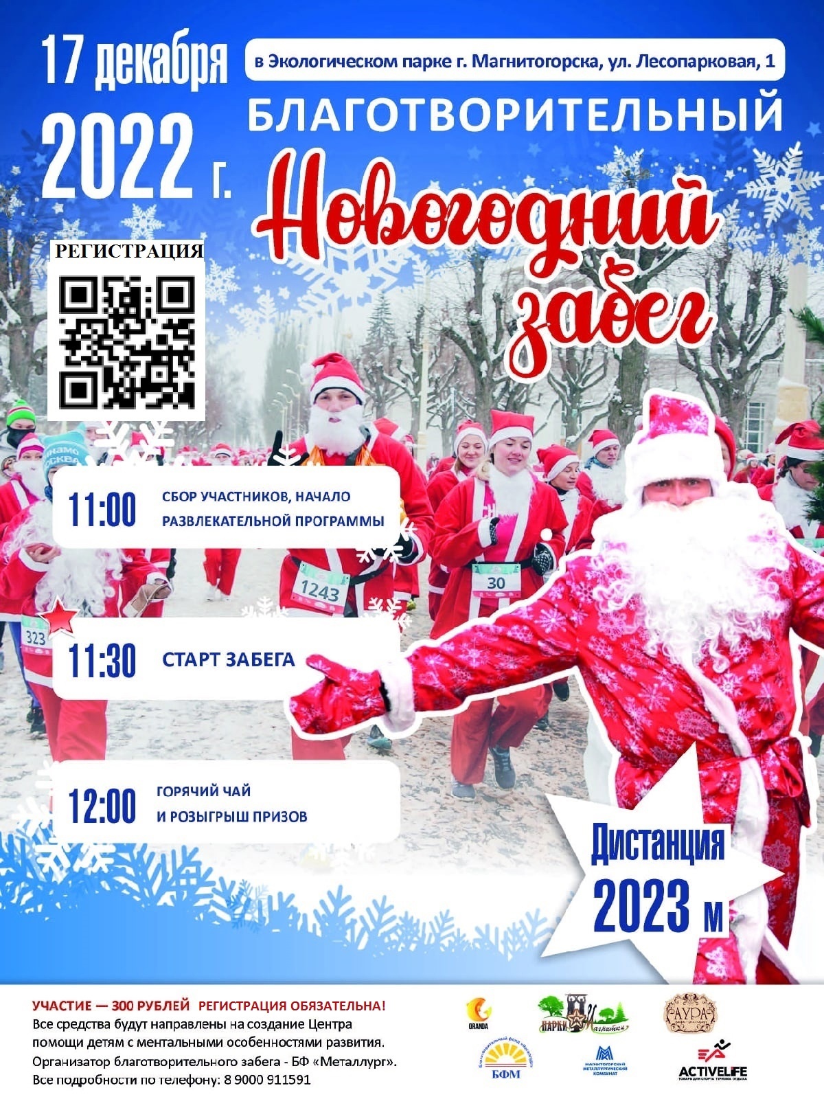 Благотворительный фонд «Металлург» организует Новогодний забег. Он пройдет в субботу, 17 декабря , в Экологическом парке по ул. Лесопарковой, 1. Начало в 11.00 . Дистанция составит 2 023 метра.