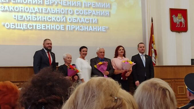 Церемония награждения в канун Дня пожилого человека состоялась в Законодательном собрании Челябинской области. Областные депутаты Павел Васильевич Киселёв и Елена Сергеевна Тарасова всем лауреатам вручили удостоверение, нагрудный знак «Общественное признание» и денежную премию.