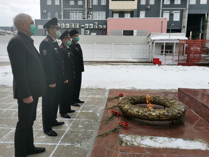 В День защитника Отечества на территории Управления МВД России по городу Челябинску прошла торжественная церемония возложения цветов к мемориальному комплексу.