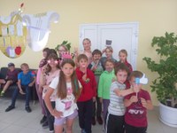 В программу входило несколько развлекательных игр и танцев. Сначала дети поприветствовали друг друга, дав «пять» каждому. Затем провели танцевальную игру, где юные «тиктокеры» образовали большой дружный круг и передавали значок тик тока пока играет нарезка треков из популярного приложения, затем танцевали в середине круга. Ребятам очень понравился флешмоб, они с удовольствием повторяли тренды, у кого не получалось- те пробовали создать свой тренд. Так же поиграли мимикой лица и повторили за смайликами разные эмоции. В конце нашей программы сделали много селфи и общие фото с использованием бутафории – шляпы, короны, очки, усы, бороды – яркие и разные по форме.